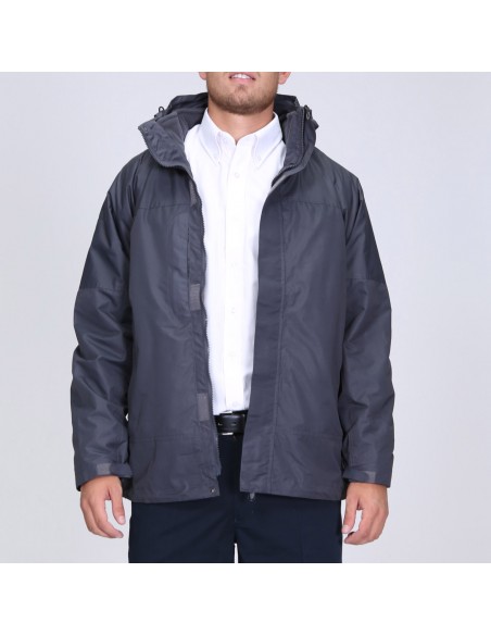 Una prenda excepcional para su staff, ideal para quienes que viajan constantemente a lo largo del pais enfrentando distintos climas. Combinando la casaca polar con el cortaviento, este modelo puede transformarse en una cómoda parka. Fabricada en tela con revestimiento PA 100% polyester, es una prenda semi-impermeable. Incluye gorro anatómico desprendible. Producto importado.