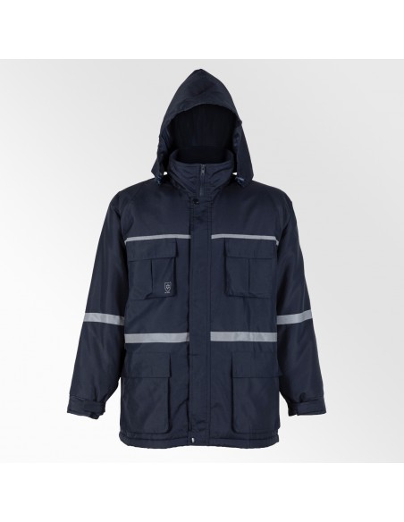 Esta Parka térmica posee cualidades que permiten mantener al trabajador protegido del frío en todo lugar. Provee de excelente abrigo gracias a su aislante interior 100% polyester y capa interna de polar que en conjunto otorgan un mayor confort térmico. Su tela exterior es repelente al agua, y los reflectantes en brazo, pecho y espalda, mejoran la visibilidad del trabajador. Producto importado.