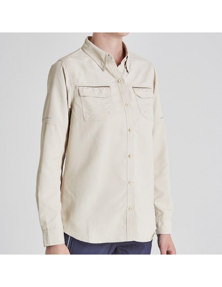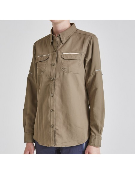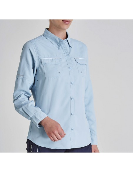 La nueva blusa outdoor de secado rápido elasticada se opone al pensamiento convencional para ofrecer un rendimiento, comodidad y estilo superior. De tela liviana y diseño con atributos de respirabilidad en cuello y espalda, manga con botón y roll up, y basta de media luna. Cuenta con protección UPF para mayor seguridad del usuario. Producto nuevo.