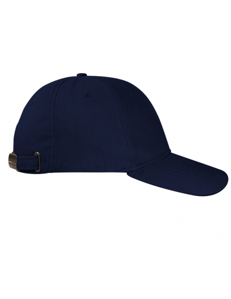 Gorro para uso promocional, deportivo o  corporativo. Puede ser excelente producto como regalo promocional en ferias o eventos. Confeccionado tela base Gabardina Denim, de composición 100% Algodón. Su casco es 6p tiene ajuste hebilla. Para gorro bordado, el mínimo de compra son 25 gorros. Producto importado.
