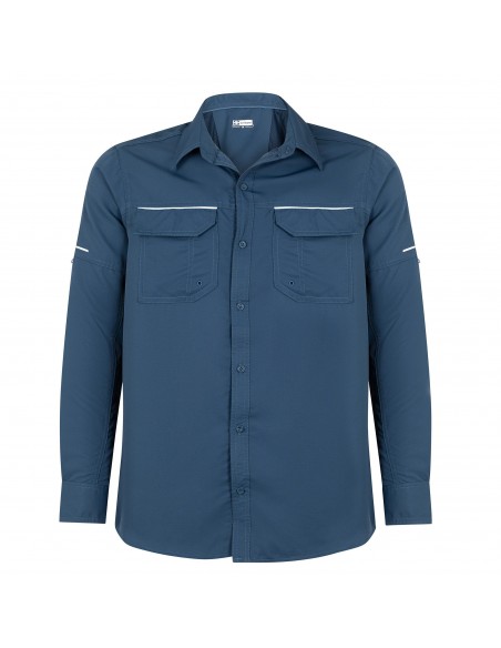 La nueva camisa outdoor de secado rápido se opone al pensamiento convencional para ofrecer un rendimiento, comodidad y estilo superior. De tela liviana y diseño con atributos de respirabilidad, cuello camisero con pasador en aletas, bolsillos delanteros con cierre, manga con botón y roll up con cinta elástica, y basta de media luna. Cuenta con protección UPF para mayor seguridad del usuario.