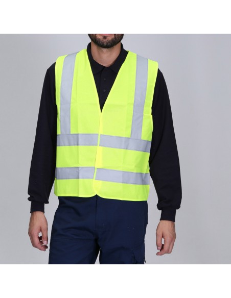 Prenda indispensable para la seguridad trabajadores, peatones y ciclistas que transitan cercanos a vehículos en movimiento. Este chaleco alta visibilidad tipo CLASE 2, está confeccionado en tela color flúor amarillo, con cinta reflectante de 50 mm en delantero y espalda. Producto importado.